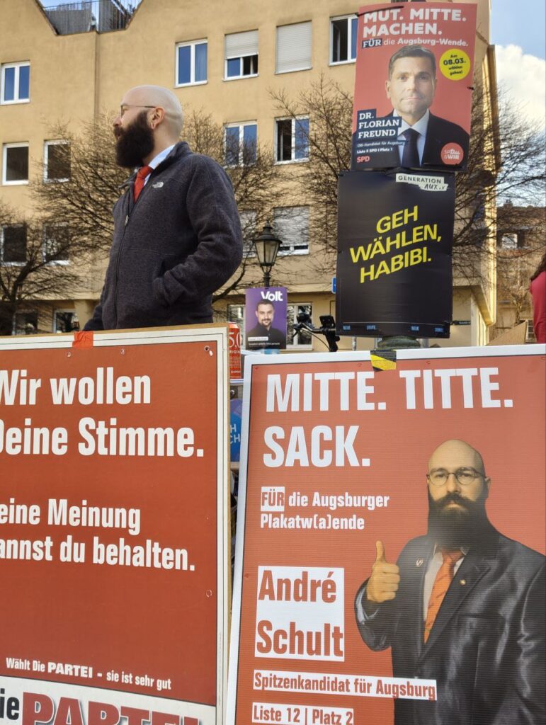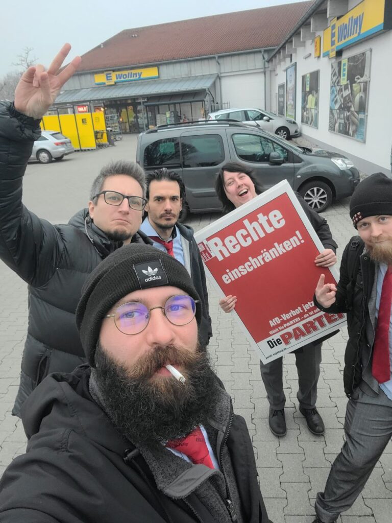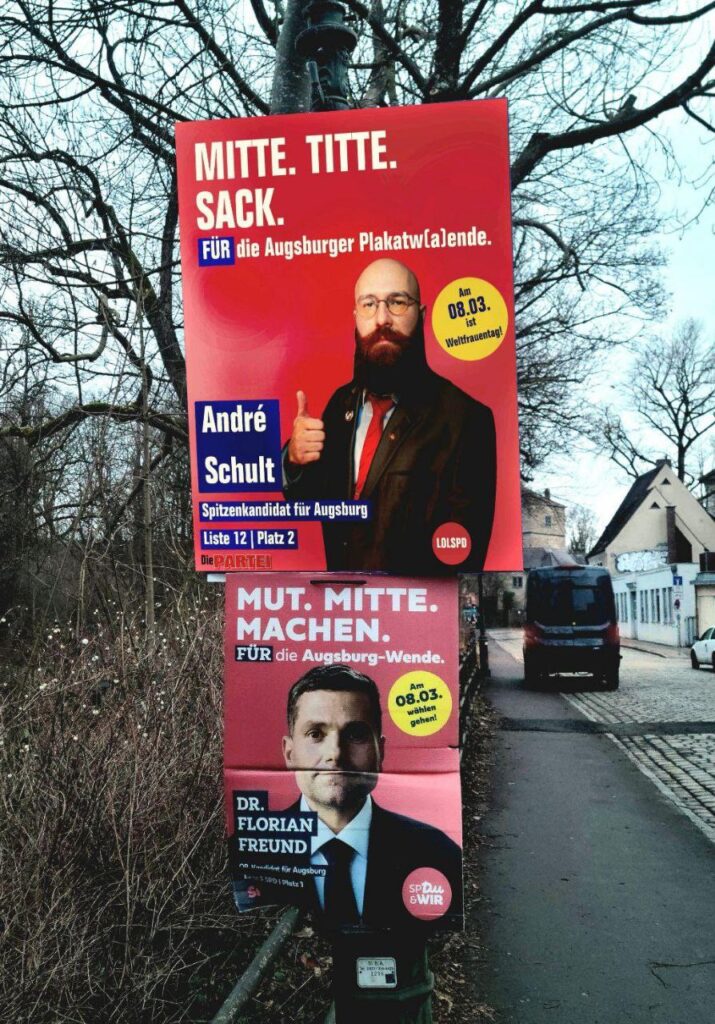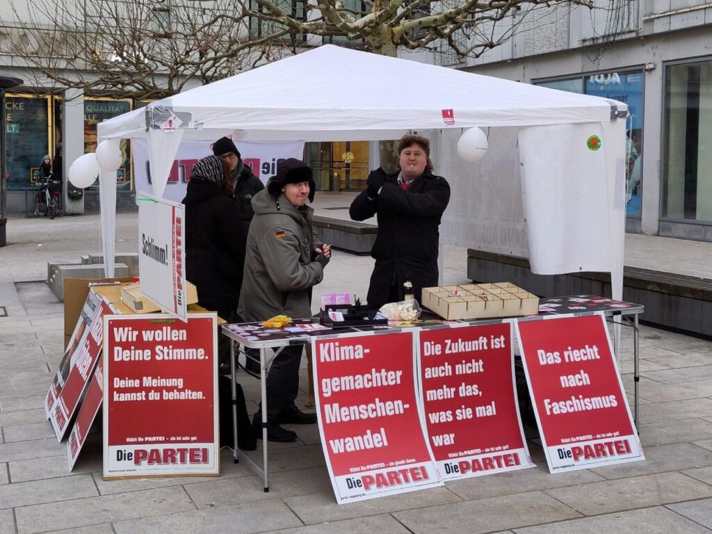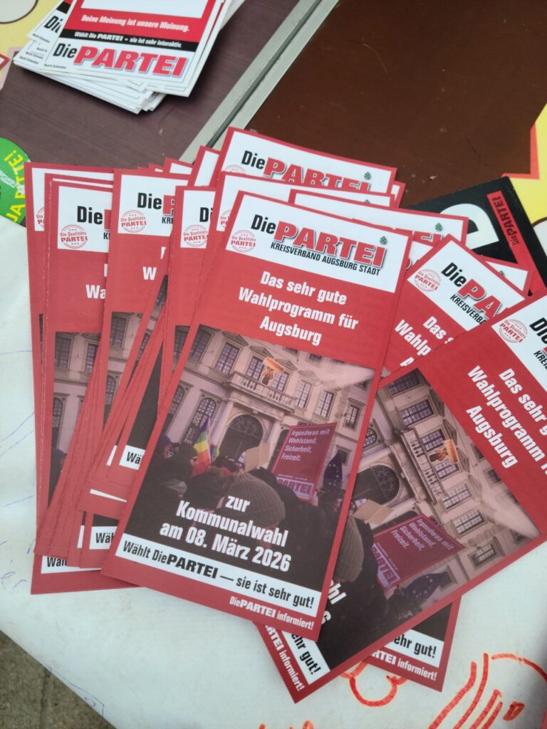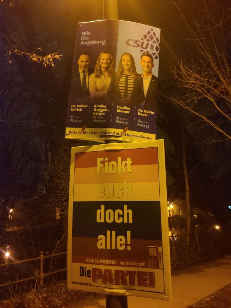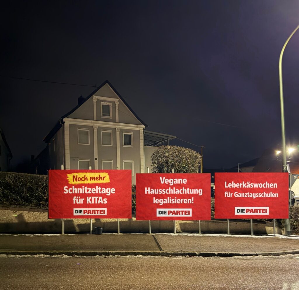 Endlich war es wieder so weit: die kleinen Wahlen in den schönen Städten und Gemeinden unseres schönen Schwabens standen an. Von Herrschaftsfantasien und der Aussicht auf ein neues goldenes Zeitalter im eigenen Bezirk motivierte GenossiX zogen aus, um dem blinden Wahlvolk die Augen zu öffnen und sie um ihre Stimme für den großen Wandel zu bitten. Mal mehr, mal noch mehr erfolgreich kannte die Motivation und die Leidenschaft der Beteiligten keine Grenzen. Im Gegensatz zur Frisur des einzigartigen Friedrich Merz. Anbei präsentieren wir eine kleine Auswahl eines prachtvollen Wahlkampfes auf den Straßen des großartigsten Bezirkes der Welt.